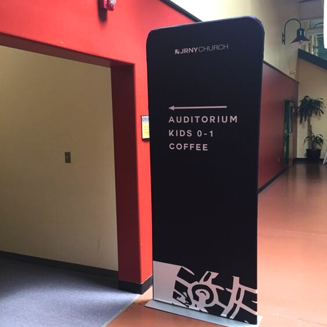 Graphics are produced using full-color dye sublimation on 8.8 oz tension fabric, giving them rich color saturation, sharp detail, and a soft matte finish that eliminates glare. Choose double-sided printing to maximize visibility from every angle — perfect for high-traffic environments.